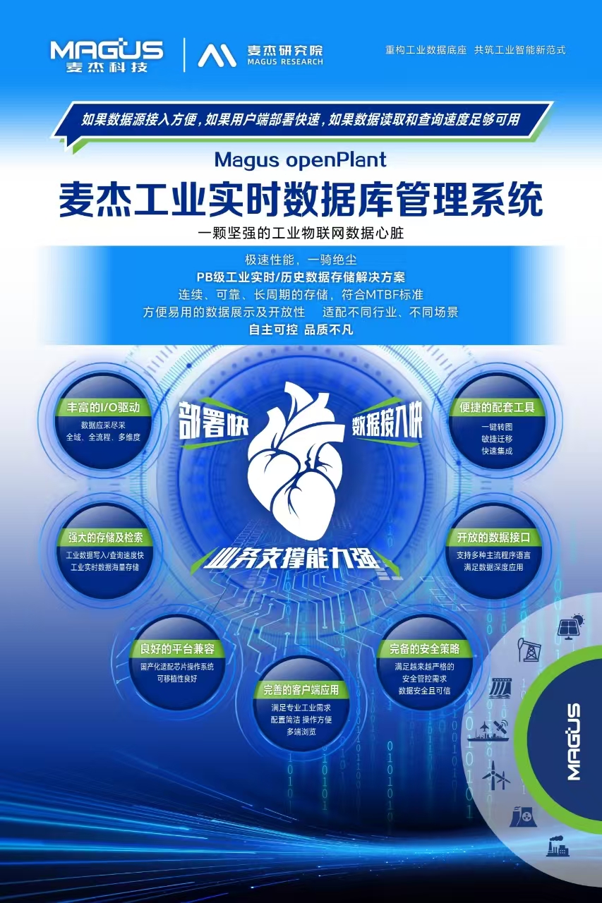 作为最早自主研发国产工业实时数据库产品的原创型领军企业,麦杰openPlant历经24年不断迭代升级,率先创新以工业数据和工业知识双轮驱动的工业数据管理新模式,在以采集、存储、计算、管理和应用为核心的工业数据全链路解决方案中始终位居C位,不断获得1000+能源电力、石油石化、钢铁、生物、制药等重资产、强实时、高耗能、密知识型央国企得到青睐。