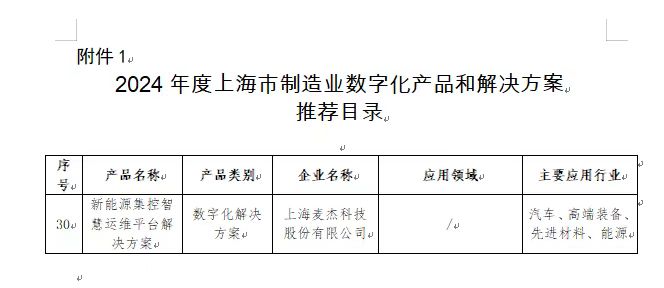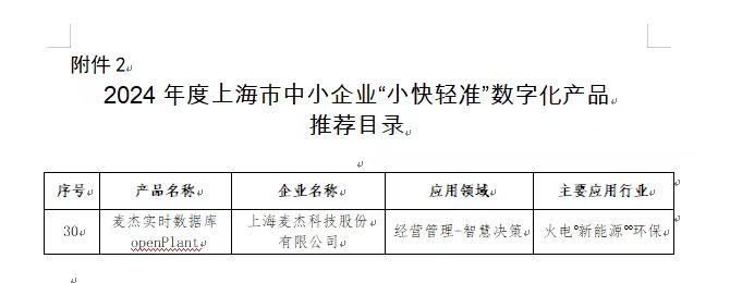 日前上海市经信委发布首批《上海市重点产业和领域数字化产品和解决方案推荐目录》,乐动在线平台_乐动在线官网“麦杰实时数据库openPlant”及“新能源集控智慧运维平台解决方案”荣耀入选。